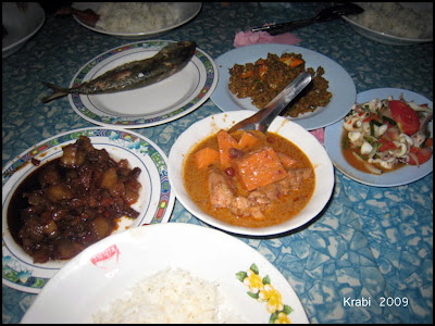 #46 At night, the tour guide Somja brought us to the night market for dinner. There's all these zap fan stalls in the night market and if you don't have any locals bringing you around, you probably will end up eating in the Thai restaurants around the beach. But let me tell you this. THis is probably the BEST meal I had in Krabi, and so cheap you wouldn't believe it. See the pork on the top right corner? That's extremely spicy but it's SO NICE and you wanted to keep having it even though your tongue can't stand liao. Haih think of it now also I hungry ady.